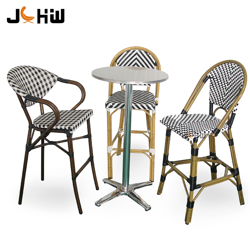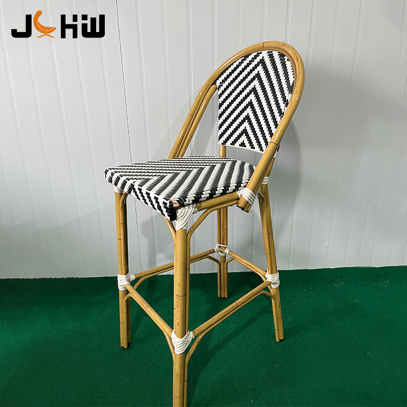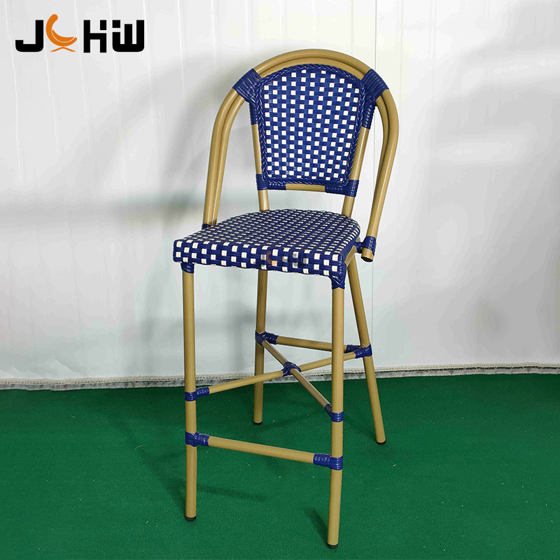 Customizable rattan outdoor hotel restaurant furniture cafe bistro bar stool metal outdoor garden bisto high bar chair